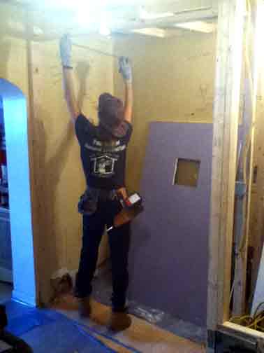 Here is Paul's wife Jolie helping frame a new powder room